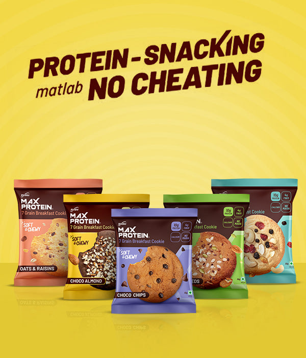 RiteBite Max Protein Cookies provides 10g protein and 4g fiber in a single wholesome cookie. Made with 7 super grains, it's a filling, healthy alternative to junk snacks. No Maida, 100% veg, and available in delicious flavors—perfect for smart snacking between meals to stay energized longer.