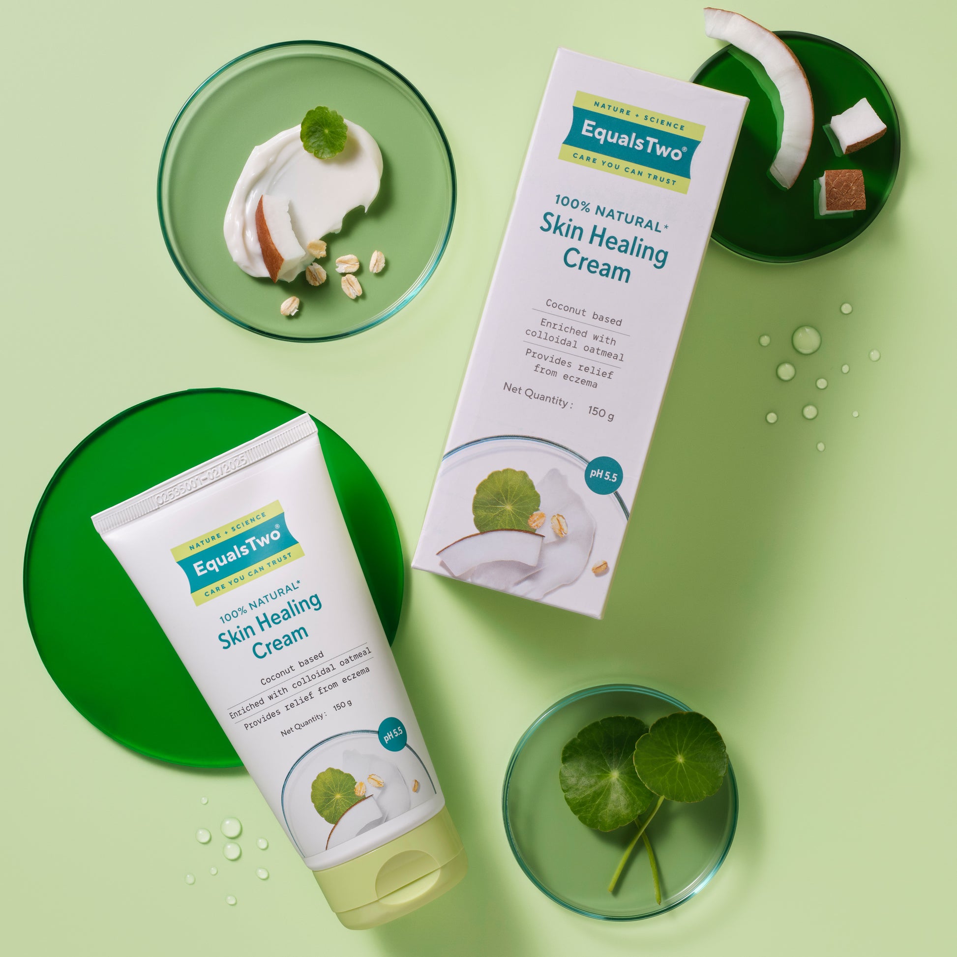 EqualsTwo Skin healing cream is a 100% Natural coconut based cream enriched with natural ingredients which help in reducing dryness and provide relief from eczema